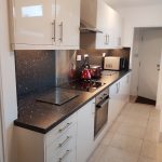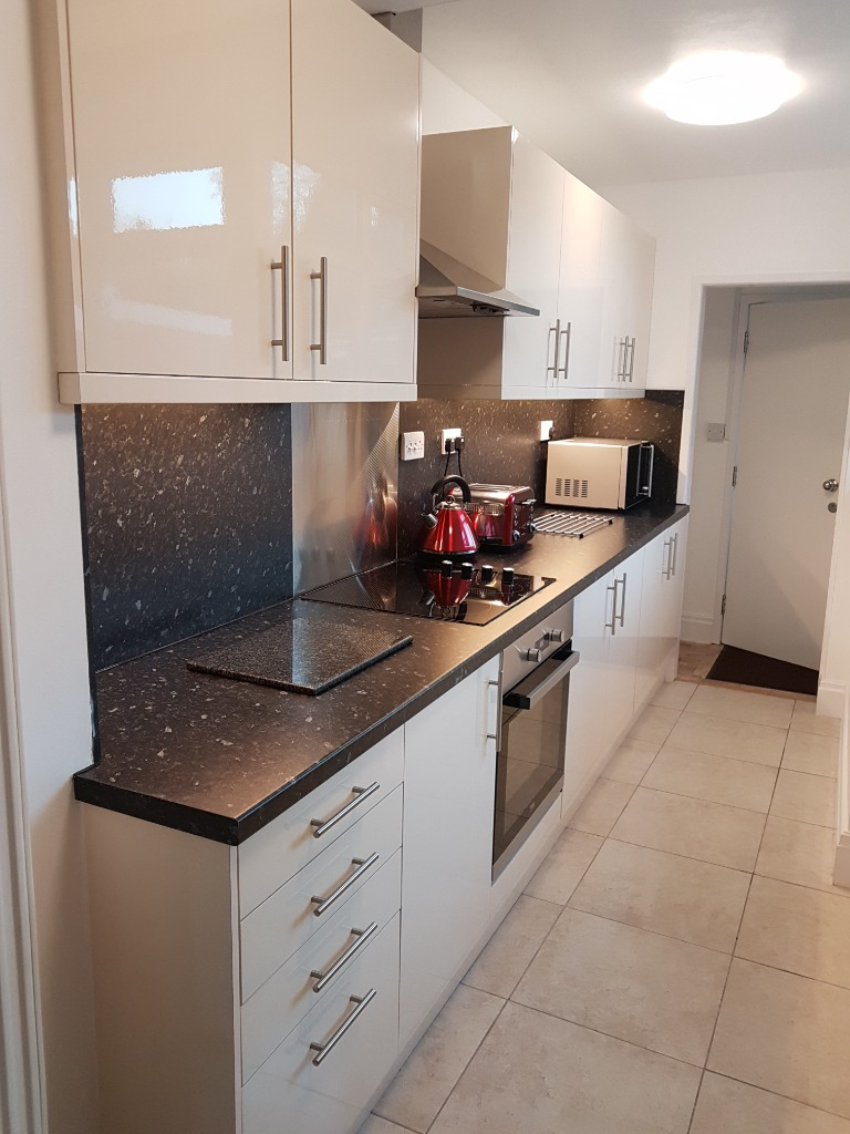 There is a communal kitchen with storage, electric oven & hob and shared bathroom.