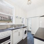Kitchen has various wall & floor units, electric cooker, white goods and door to enclosed rear garden.